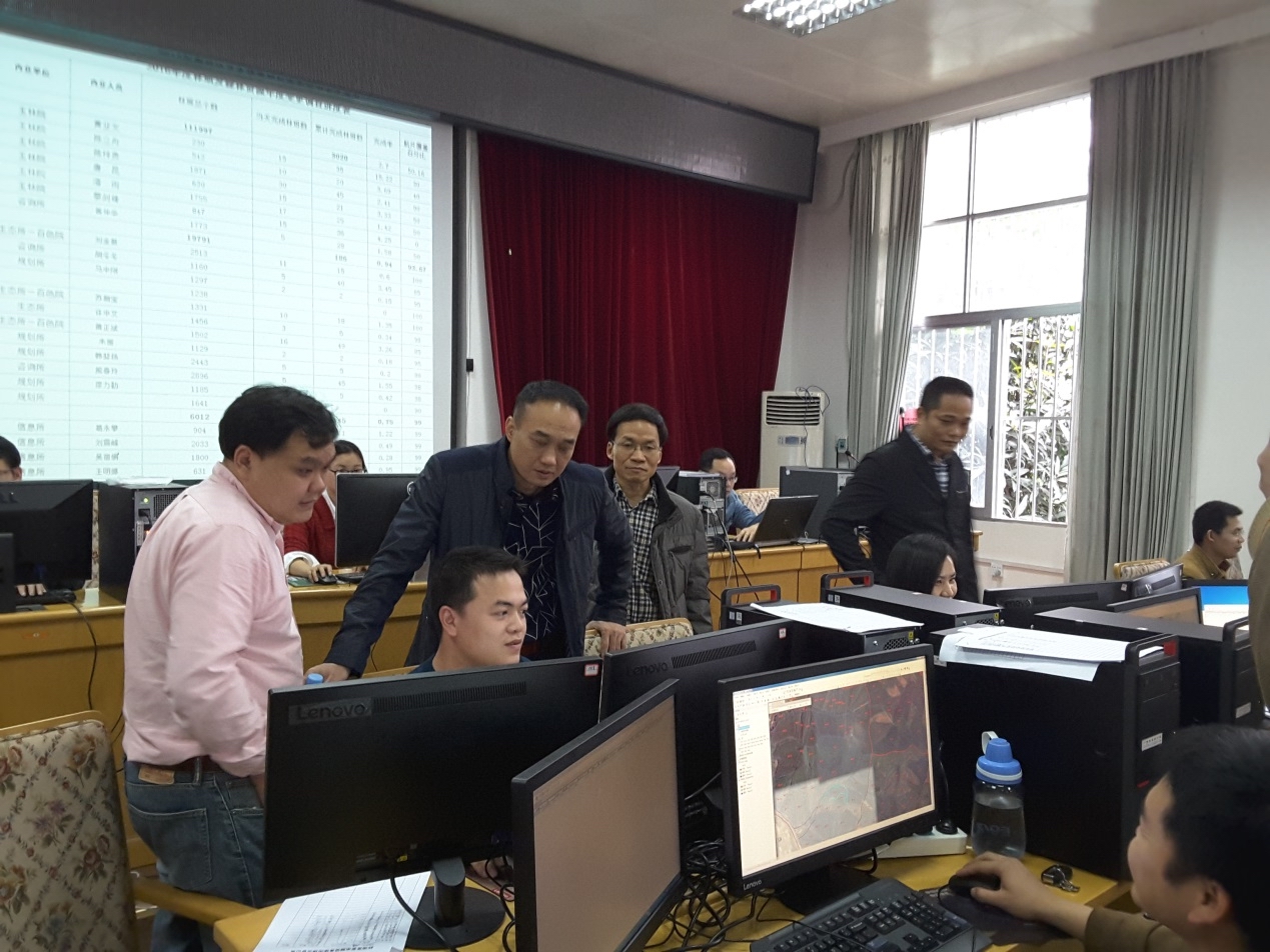 黄强处长强调,在下一步工作中,我院要着重做好以下工作:一是要加大宣传力度,请各市、县级林业主管部门领导到广西林业设计院了解林地变更调查集中工作情况,争取得到有关领导的重视和支持;二是广西林业设计院在技术上要和中南林业调查规划院技术指导团队加强沟通和合作,以统一技术方法和质量标准指导和开展工作;三是广西林业设计院要与中南林业调查规划院、广西测绘地理信息局、市级林业调查设计院形成合力,严格按照《广西壮族自治区林地及森林资源变更调查操作细则》的要求,依据最新的高分辩率遥感数据资料,参考国土二类调查数据进行“林地一张图”的修正和更新,确保林地变更调查工作保质保量顺利按期完成;四是按相关法规要求,切实做好相关数据资料的保密工作。