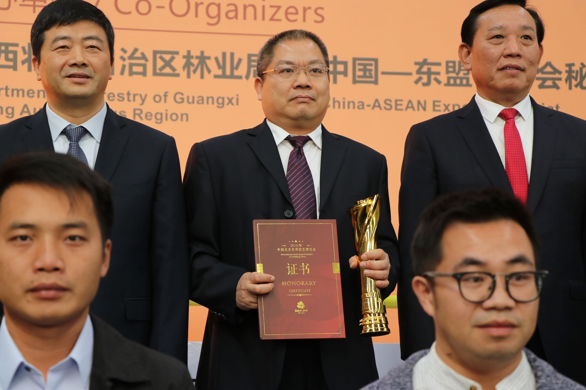 开幕仪式上,中国国家林业和草原局副局长刘东生、广西壮族自治区副主席方春明等对国家林业产业化龙头企业、广西林业产业化龙头企业进行授牌,为广西壮族自治区林业勘测设计院颁发2019北京世园会中华展园设计奖(广西园)特等奖、中国省区市展区设计奖(广西展区)金奖,为2019北京世园会广西获得特等奖、金等奖的产品颁奖,现场还举行了广西国有高峰林场与广西高峰城投资集团签约启动高峰城大型物流仓储中心仪式等活动。