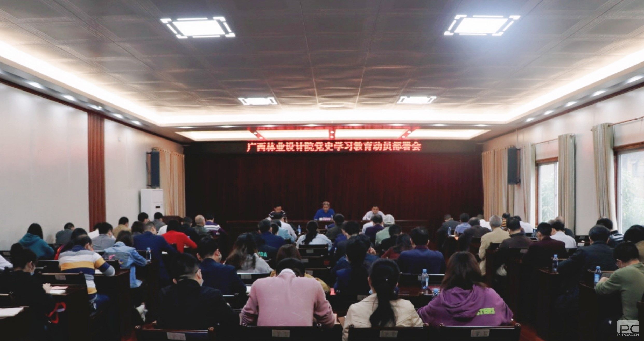 2021年3月15日,广西林业设计院召开党史学习教育动员部署会,认真学习贯彻习近平总书记重要讲话精神,贯彻落实自治区林业局党组统一部署要求,对广西林业设计院开展党史学习教育进行动员部署。广西林业设计院党委班子成员出席会议,党委书记、院长黄光银主持会议并讲话,全体党员共100余人参加。